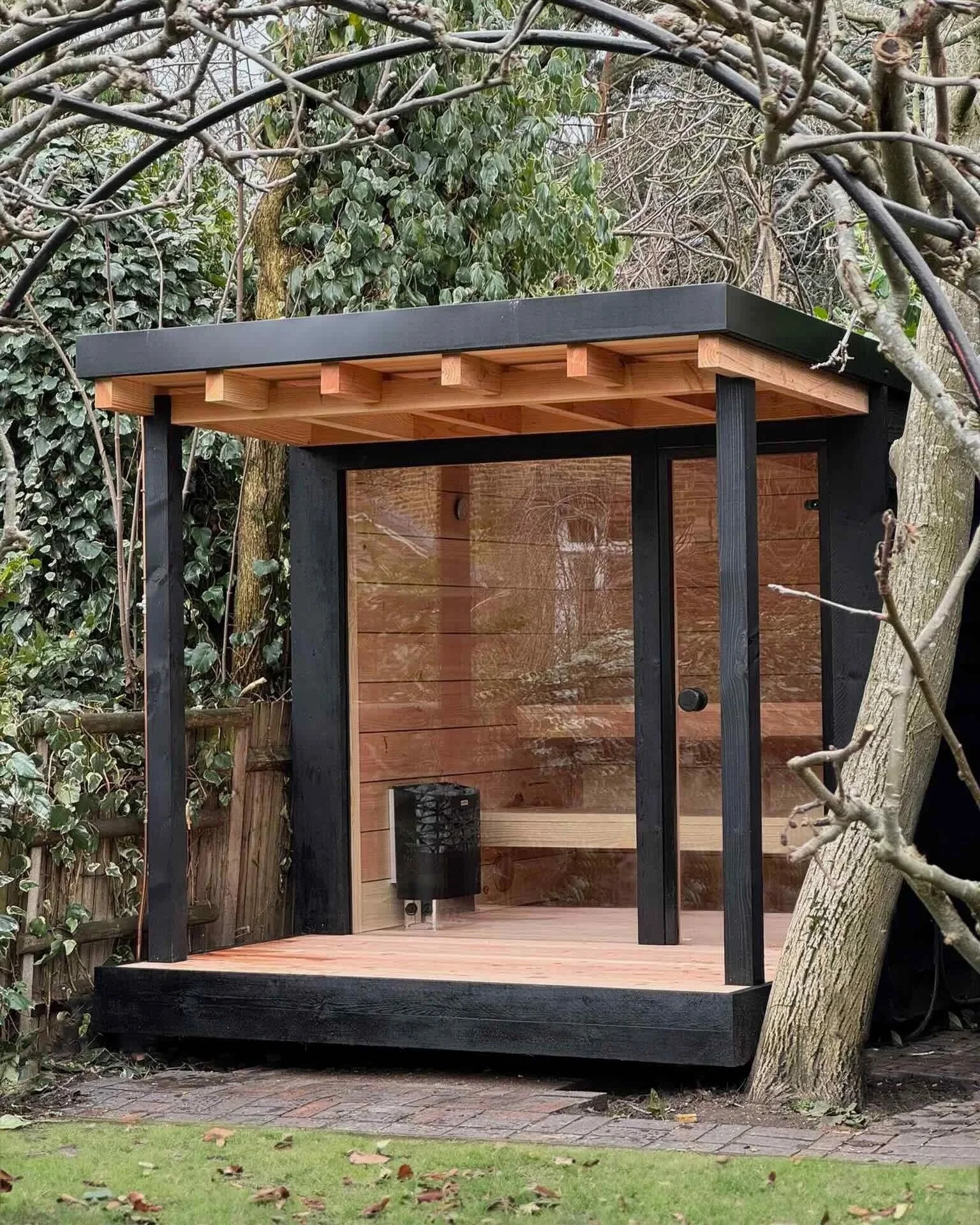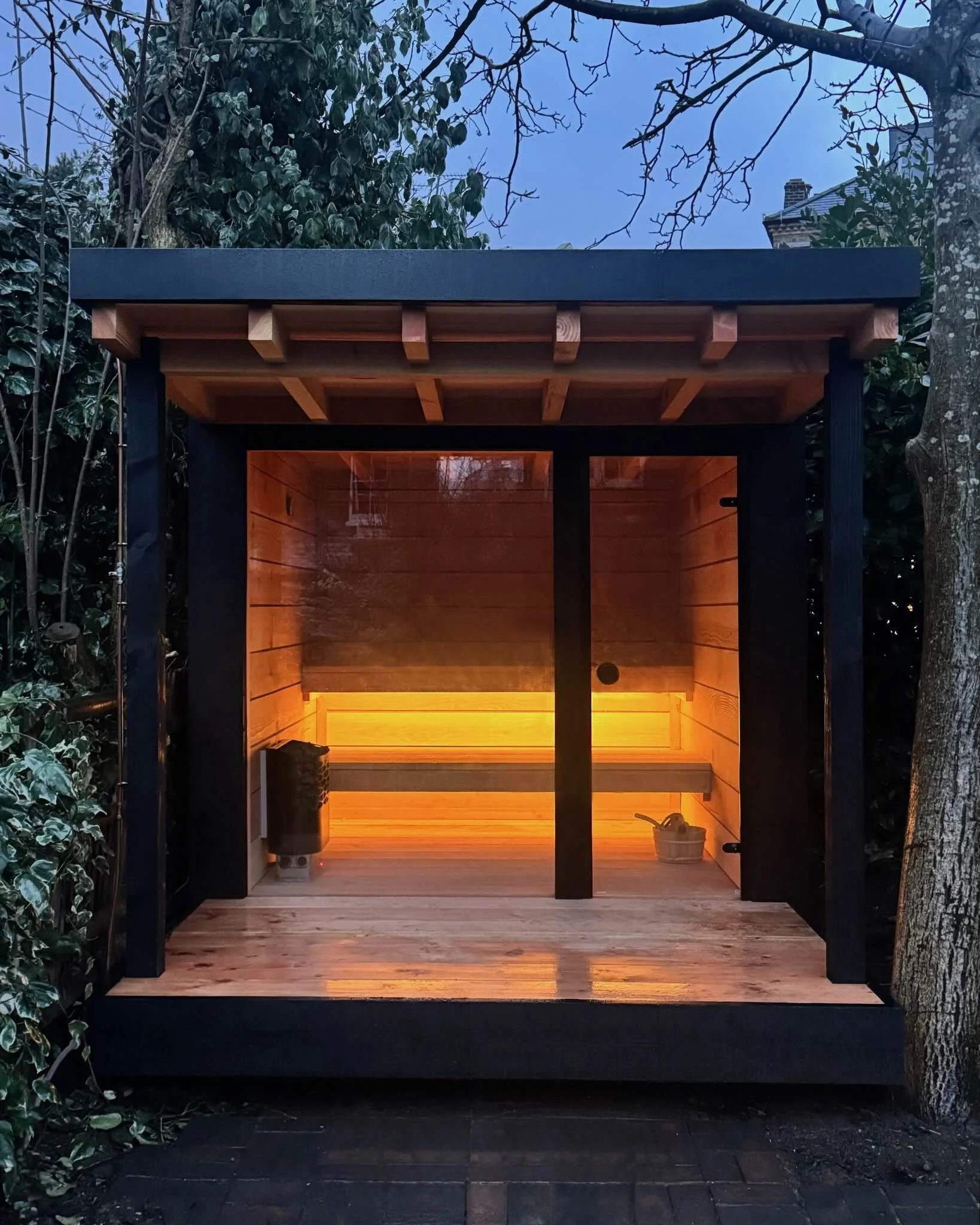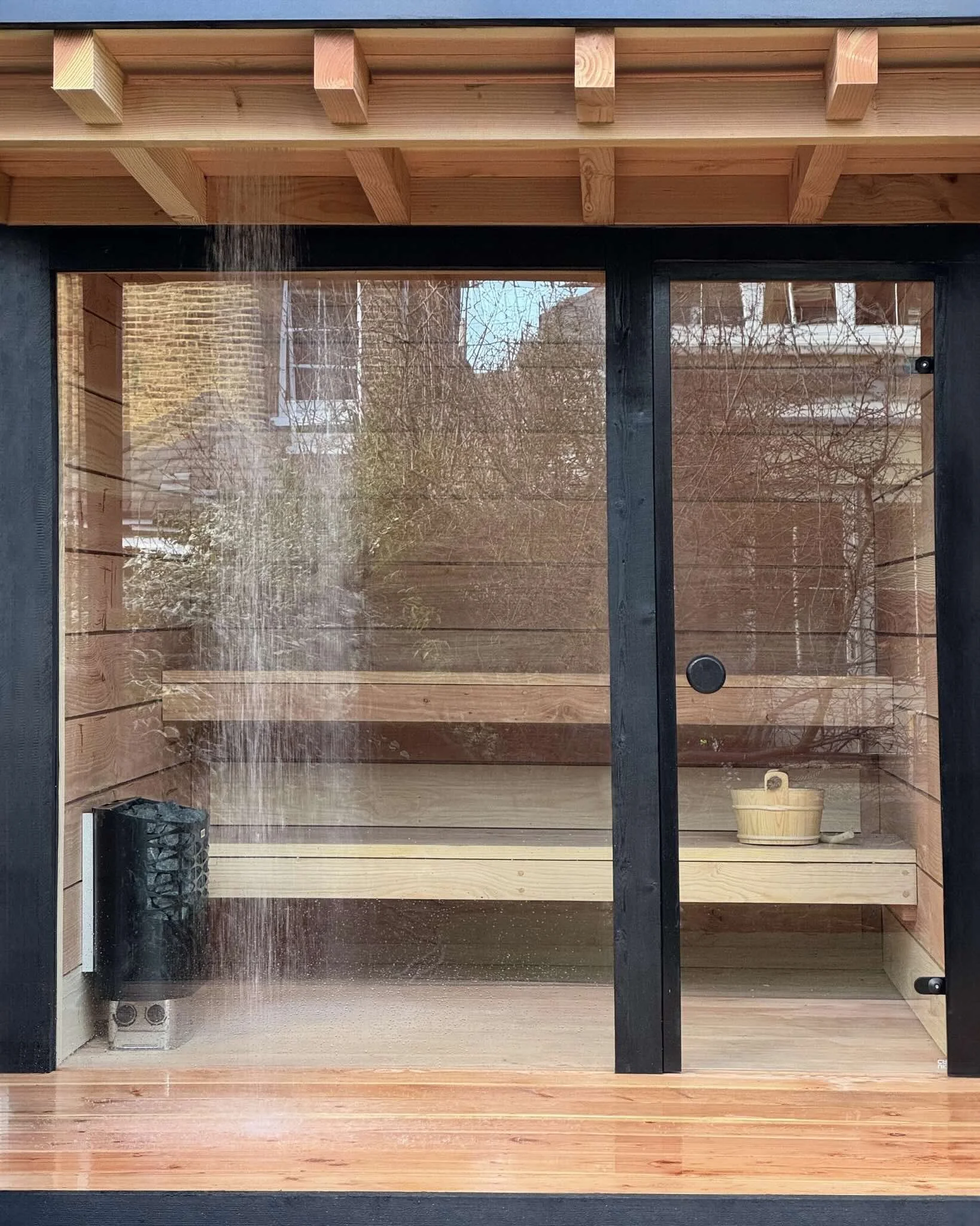 Traditional craft and a selection of renewable natural materials come together in our Sauna. Made from solid douglas fir internal and external cladding and joinery, framed in floor to ceiling by bespoke glass work.